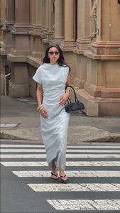 PRE-ORDER - Sky Blue Velour Linen Maxi Dress