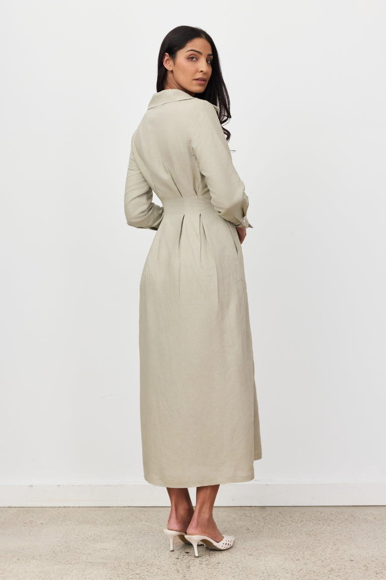 Sage Florence Long Sleeve Linen Maxi Dress